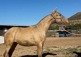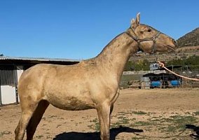 COMMENTS: DOUBLE PEARL Andalusian filly, super fancy rare isabelo color coat, both parents are isabelos, dam is imported from Spain, great temperament, basic ground work, beautiful kind eyes, impressive bloodlines, quality breeding, her dam is imported from Spain and on site. Shipping cross country can be arranged, passing all 48 states weekly.