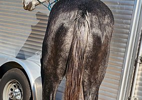 Folks, Omaha is one of those mare’s that don’t know that she is a mare, she is extremely sweet, kind and friendly with all her pasture mates, you can turn her out with other mare’s or geldings, she doesn’t know how to be mean to any of them nor marish! She will be the first one to meet you at the pasture gate, she loves attention, stalls nicely and loves to ride. She is a true born to please the owner type of horse. She is fully trained to neck reins, side passes, back up, etc… She is traffic safe, arena safe and trail safe, she has a super smooth run walk gait and loves to lope, she will make someone the ultimate dream horse for sure! Omaha handles everything with confidence, she will trail ride all day if that’s what you like to do, she goes wherever you point her head to, she crosses over logs and loves to go through water! She will ride alone or in a group. If you have been looking for a horse who will get heads turn at the trails, who will get you a lot of complement on how pretty and how sweet your horse is, look no further, Omaha got you cover! She is extremely good with farrier, to be tacked up, load and unload with no hesitations, you just can’t ask for a better mare than this girl! Call us about her, you be glad that you did!