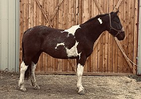 Ultron is the kind of gelding who bonds closely with his person, is easy to catch, and loves attention. He gets along with all types of horses and livestock, is respectful in the herd, and stands tied, loads, bathes, and is great for the vet and farrier.