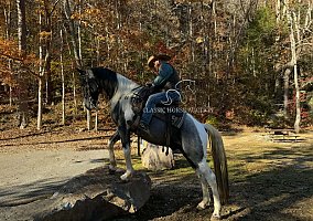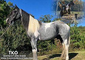 TKO is a 10 year old grade Kentucky Mountain gelding standing around 15.1 hands and keg shod. He rides great in big groups or small and will ride comfortably in the front back middle or out alone. TKO has been trail ridden throughout Alabama Mississippi Tennessee and the great state of Kentucky. He will handle steep slopes crosses water and goes through mud and ditches confidently crossing just about anything you point him toward. He is easy to catch clip bathe tack up load and handle. TKO has been exposed to all kinds of wildlife including deer and turkey as well as other animals like cows and dogs. TKO is up to date on Coggins health certificate and vet exam. He has received his Equine Core vaccines including Rabies West Nile EEE WEE and Tetanus. I invite everyone to come see TKO and let him speak for himself. TKO will be your next riding partner.