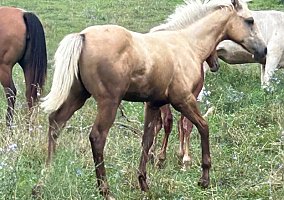 An excellent solid palomino filly, A well-bred cow horse pedigree with a ton of cow sense built right in. This filly will be able to do anything. She will have good size and bone.