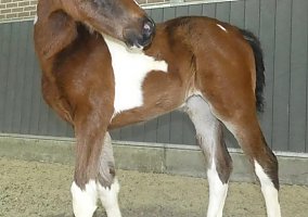 Wadina een prachtige 4 jarige bonte merrie. Ze is zadelmak en wordt nu zowel dressuurmatig als springgericht getraind. Ze is braaf bij de smid, tandarts en de veearts. Ook op trailer staat ze zonder moeite.