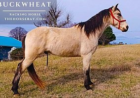 Buckwheat is a coming 5-year-old gelding standing 14.3 hands, expected to mature around 15 hands. He was raised on the farm and has been handled correctly from the start. He gets along well with other horses and has plenty of real trail miles under him across Kentucky, Virginia, and Tennessee.