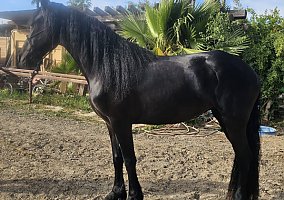 COMMENTS: Beautiful purebred friesian mare, she is ideal for a future in dressage, performance, or as a broodmare. Good clean conformation and that unmistakable Friesian presence. She has a very elegant head and high potential, exceptional movements, long mane, good powerful build, good ground manners, calm and willing temperament. She is easy to handle and walk and trailers well. Horse transportation can easily be arranged.
