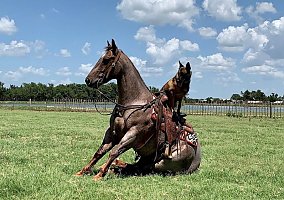 WE DO SHIP. We have amazing offers now! Purchase 3+ Horses and we will ship all for FREE. All our horses come with a 30 days Money-Back Guarantee! He does all the maneuvers in the cowhorse pattern and is very simple and easy. He has been roped on in the arena and in the pasture. If you rope it, he can handle it. Alibaba is a ranch horse deluxe and goes right where you send him. He handles any situation with ease. He’s dependable and honest. Alibaba is gentle for everyone and happy to go whatever speed you wish. He’s always safe and very quiet even with time off. He’s perfect on the trails and confident alone or in a group. Alibaba has a funny personality and loves attention. He’s very affectionate and just an all around great gelding. No matter what you want to do, he’s always a trooper and very willing. Alibaba has it all going. He has the breeding, the ride, the looks and as a bonus, the color!