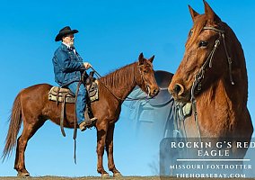 Rockin G’s Red Eagle is a registered 2021 Missouri Foxtrotter Gelding standing 15.1hh. Eagle is a great young trail horse that will be a good trail partner for a long time. He will go just about anywhere you want to go with no problem. He will cross water, logs, and rough terrain with ease and a smooth gait. He will stand to be saddled and mounted. He loads and hauls great. He is easy to catch and handle. Anyone can ride him who knows how. He will go slow, or he can move on down the trail so he can be ridden with any kind of horse. If you’re looking for a good trail partner, Eagle is your guy!