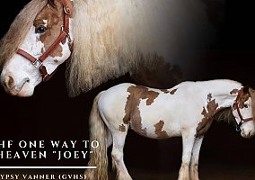 Affectionately known as Joey, is truly Heaven Sent! We’ve had the pleasure of owning Joey since he was a weanling. So, for the last 3 years. Bred by the great Feathered Horse Farms, where quality Gypsy Vanner horses are the utmost goal. Joey is the frontrunner in both our guided trail-riding business and our riding lesson program. Standing a stout & growing 13.3HH. Don’t let his age fool you; he’s had hundreds of different children on his back. He’s been to birthday parties, Halloween Festivals, tons of parades, pony rides for city events, Christmas Tree lightings & tons more. He’s a superstar everywhere he goes. His wonderful, funny personality & gentle nature have made him the perfect horse for these types of events. Many have asked us what we will do without him in our program, as he’s one of our go-to guys, but the time has come to make some much-needed upgrades to our farm & arena, & great rewards come with great sacrifices. Joey is ready to go make your family’s or your community’s dreams come true! He doesn’t get rattled in loud, chaotic situations. Sirens, blown-up costumes, heavy equipment, dogs, carriages, this guy has seen it all. So many in our area have taken their first ride on Joey. His long, beautiful hair & terrific disposition make him the number one choice at our farm. He’s such a ham & loves attention, he has taken right to liberty training & our liberty trainer feels he will excel in this discipline. His favorite pastime is getting pets, scratches & love while he munches his alfalfa. Joeys height & sturdy build make him the perfect mount for heavier & inexperienced riders. He gladly moves over to your trailer fender, bucket, or mounting block for you to get on. He will even let you climb on his back from a friend’s back, as you can see in our videos. Joey willingly crosses water, mud, downed trees, tarps & obstacles with ease. He’s competed at local shows & courses with many different riders. Children who don’t have their own horse have shown Joey. He’s a very understanding & forgiving riding partner for beginners. On trails, he’s a sure-footed & careful boy with our guests. He quietly assesses the terrain & chooses the easiest way down & takes care of his riders. He pays no mind to Wildlife & dogs on the trail. Our weenie dog crew is constantly hunting & running wild on the trails. Joey even gives my dachshund, Charles, a ride when he needs one. Joey is a blast to ride at the stockyards as well! He loves to pen & sort cattle. You can even carry newborn calves on his back! The loud noises, flags & even bull whips don’t faze Joey at the stockyard. He’s used to a long day’s work when you need him for that. He enjoys swimming & will even let my son fish off of his back. He’s a lot of fun to train & work with. My daughter started teaching him a few tricks when he was a baby. He has been all over Kentucky, Tennessee & Indiana trail riding. He handles rocky terrain great & has never required shoes.