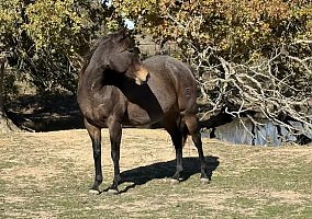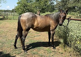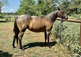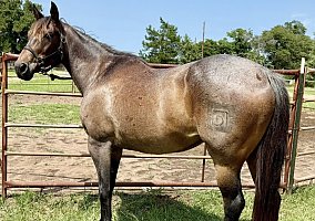 Bay roan broodmare is confirmed in foal 2026 and foal will be AQHA registered.