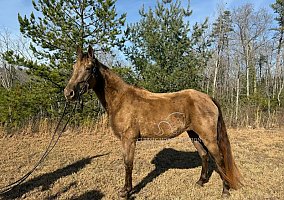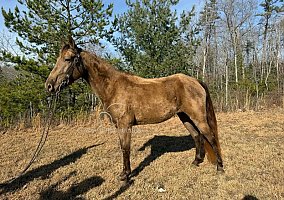 River is a 4-year-old grade Kentucky Mountain mare standing around 15hh, keg-shod. She rides great in big groups or small. She will ride in the front, back, middle, or alone. River has been trail ridden throughout Alabama, Mississippi, Tennessee, and the great state of Kentucky.She will handle any steep slopes, crosses water, crosses anything you decide to cross, and goes through mud and ditches as well. River is easy to catch, clip, bathe, tack-up, load, and handle. She has been exposed to all kinds of wildlife such as deer, turkey, and other animals like cows and dogs. River is up-to-date on Coggins, health certificate, vet exam, and she got Equine Core, Rabies, West Nile, EEE, WEE, and Tetanus. I invite everyone to come see River and let her speak for herself! River will be your next riding partner.