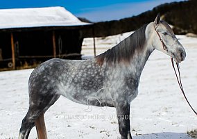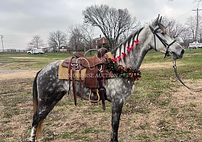 Meet the one and only The Dixie’s Dimple, a registered Tennessee Walking Horse Trail Deluxe mare who will be 5 years old this May and stands just over 15.1 hands on four keg shoes. She is 100% up to date on vaccines and dental work and is truly the real deal. This beautiful dapple-gray mare has been ridden extensively throughout Kentucky and Tennessee, and it shows—she’s confident, experienced, and still young with many great years ahead. Dimple has an in-your-pocket personality and is as sweet as they come; she loves attention, is easy to handle, easy to catch, and gets along great with other horses, never taking a hateful step. She is a top-tier trail horse that will take you anywhere with confidence, offering a smooth, stylish 4-beat gait, riding quietly on a loose rein all day or stepping it up to cruise the blacktop when asked. She is traffic safe, farm equipment safe, and has been ridden on county roads without missing a beat. Proven and trustworthy, she even carried my wife in her very first Christmas parade, handling lights, crowds, and noise like a seasoned veteran. Extra broke and safe, Dimple is broke to canter, comes to the mounting block, parks out to mount, is gun and firework safe, and rides happily in the front, middle, back, or out alone. She’s a big, loving mare that wants attention and a job, and if you’re looking for a registered TWH mare that has been there and done that while still being safe and enjoyable for the whole family, The Dixie’s Dimple is a one-of-a-kind opportunity.