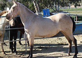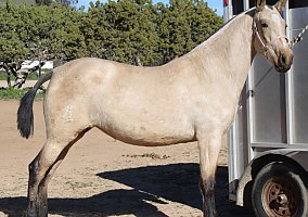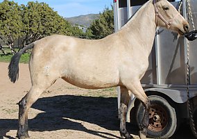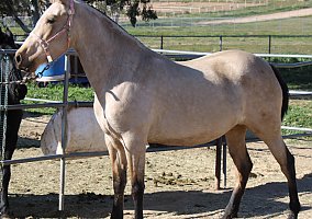 COMMENTS: Beautiful buckskin Andalusian mare. Her Sire is a perlino imported from Spain. ANCCE paperwork in order. Excellent Broodmare for a breeding program, will certainly pass on her color and movement pattern, beautiful, quality baroque style, knows ground work, lunges, halters, loads fine and stands for farrier. Red factor (e), Cream Dilution (Cr). She was bred on May 25, 2025 to Imperioso Salvatella II (Palomino Andalusian) and is confirmed for a 2026 foal. Reputable horse transportation can be arranged!