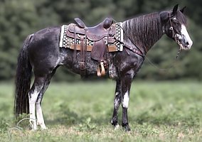 "Meet Moon-Pie, a beautiful 8-year-old Kentucky Mountain Horse mare with a striking blue roan coat. Standing at 15 hands, she’s the total package: sweet, steady, and smooth!