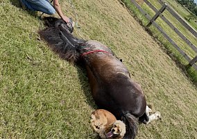 • Gets along well with other horses, dogs, cows, and goats