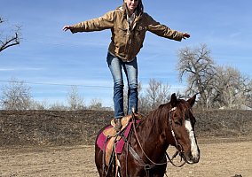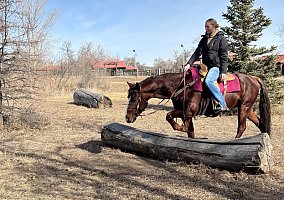 Jesse is the kind of gelding that thrives outside the arena. He lives for long, relaxing trail rides and has been exposed to it all — from rural landscapes to downtown hustle. He’s confident and calm around traffic, dogs, strollers, bikes, bridges, and water crossings. Wherever you point him, he goes — and he does it with a relaxed, more whoa than go attitude.