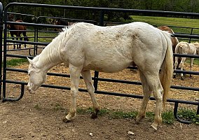 Yearling double dilute AQHA colt with blue eyes. Gay Bar King, Doc's Lynx, Kids Classic Style, Rocket Wrangler, Sonny Dee Bar breeding.