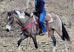 Stardust is no stranger to the trails, having been ridden many miles in the mountains of KY, TN, and WV, including overnight wagon trains and group rides. Stardust willingly crosses the ditches and water and will take you up the steepest parts of the trail, spook-free and sure-footed.