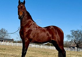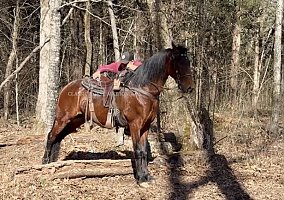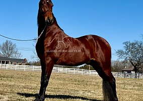 Absolute is a Registered Tennessee Walking Horse gelding standing a solid 15.3 hands tall and dressed in a stunning, unique rich bay coat that truly sets him apart. With four sharp black stockings and bold black points, this eye-catching bay is a standout wherever he goes. Calm, willing, and eager to please, Absolute is a multi-talented horse that drives just as beautifully as he rides. Under saddle, he is safe, steady, and confident! Stepping over logs, rocks, and crossing mud puddles with grace and sure-footed ease. He parks out and stands patiently at the mounting block like the true gentleman he is. On the road or around the farm, he is traffic, and dog approved. Ready to go wherever you point him! In harness, Absolute absolutely hooks up like a dream! He stands quietly for harnessing and is unfazed by the breeching, lines, crupper, or even noise. He remains still and patient while you load up and unload from the buggy, showing the kind of solid mind everyone wants in a driving horse. Shoe jobs, haircuts, and baths are no problem for this gorgeous boy. He is mannerly, dependable, and ready to be your next trusted partner. Come ride or drive him today and see why Absolute is absolutely the best!!Justin Jenne’ Classic Horse Auction Consignment 931-224-2968 Lewisburg, TN