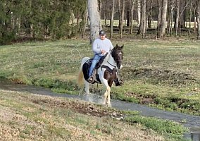 Registered American Gaited Horse for sale, Grant is a safe 4-year-old trail partner with a smooth four-beat gait and a steady, dependable mind. Strong and stout on the trail, Grant is your go-to horse. He is an easy keeper and gets along well with everyone. With excellent stall manners and ground manners, he truly checks all the boxes. Grant has a nice short lope and a smooth, four-beat gait that makes him a pleasure to ride. He is traffic, dog, and farm-equipment safe. He is easy to tack up, loads with no problem, and stands nicely for mounting and dismounting, including at a mounting block. He has been trail ridden all over our farm and never flinches at wildlife. Grant confidently crosses water, mud, and logs like a professional. Having been ridden in the rocky Tennessee mountains, he is sure-footed and always takes care of his rider. He picks up all four feet with ease and never fusses for haircuts or baths. Strong, dependable, and easy to keep! Grant is the dream trail partner for an all-day ride or weekend trip.