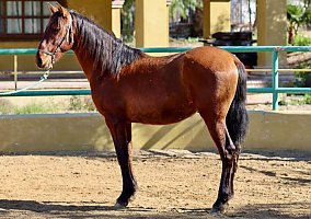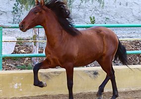 COMMENTS: Stunning bay Andalusian stud colt with three correct gaits, a fantastic character, making him super easy to handle and will be very trainable. Baroque style, elevated knee action, high-stepping movements ideal for classical dressage, correct conformation and quality bred for dressage. Stands for farrier, baths, calm around other horses and trailers very well. Horse transportation can be arranged.