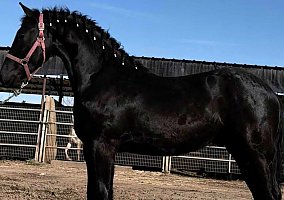COMMENTS: 2024 purebred Friesian colt with an incredible movement, correct conformation and will shine in the ring. He is very smart, calm disposition, easy to handle and has great ground manners. Super impressive bloodlines. Great grandson of Jasper 366, JAsper 366 was a legendary black Friesian stallion, famously titled "King of the Stallions" for his immense impact on the breed. He was the Preferent/Sport Elite stallion was known for his exceptional movement, five approved sons, and thousands of progeny. Horse transportation can easily be arranged.