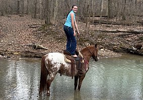 Applesauce is uncomplicated and willing to do anything you ask of him. Trail rides, wagon trains, fun shows and all Applesauce has mastered them all. Applesauce has been on many overnight rides and stands quietly tied on picket line if you choose to do so and also stalls like a pro. If you enjoy a nice peaceful trail ride applesauce is sure footed, spook free and takes care of his rider.