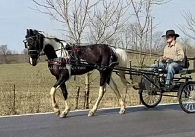 ALEN’S RITZ CAPTAIN stands 14.2 HH with a DOB of May 30, 2023. Captain is broke to ride and drive and has been exposed to a wide variety of things. He hooks up to the buggy easily and drives off quietly, stopping and backing with no problems. He is broke to shoot off of and stays calm while bullwhips are cracked around him. He will play with a ball, lay down on cue, and side pass when asked. On the trail he confidently crosses mud, logs, and rough terrain and will go wherever you point him. Captain stands quietly for mounting and dismounting and is easy to handle in every situation. He also has a nice head and a beautiful hook ear as a true gaited horse should! He is so cool we can even play catch right over the top of him without him batting an eye. Come see ALEN’S RITZ CAPTAIN for yourself. Ride him, drive him, and experience just how easygoing and versatile he truly is.