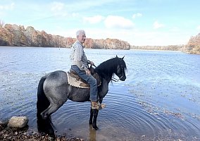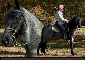I am especially proud to present Lawman, one of my all-time favorite horses. This registered Tennessee Walking Horse is a gleaming silvery blue roan, and his super-thick mane and tail are a luxurious velvet black.