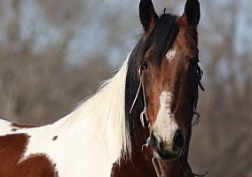 Starlette is a 2016 bay tobiano Missouri Fox Trotter mare standing at 14.2 hands. She will flatfoot walk on a loose rein or move on out easily. NOTE: Contact us only on our website or #; https://www.horsesranch.com/ , www.horsesranch.com/,
