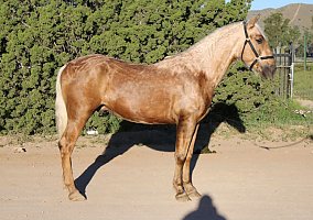 COMMENTS: 2023 Palomino Andalusian Stallion, High-potential young dressage prospect featuring three quality, elastic gaits, showcasing great expression in his movement, trainable prospect for upper-level FEI dressage, outstanding bloodlines, quality breeding, rare color coat (his sire is an imported Palomino stallion), super fancy, a calm temperament, he is a colt with many qualities for dressage, possessing three very good gaits and great quality in his movements. Horse transportation not a problem.