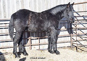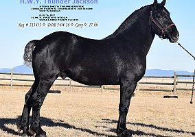 Jackson is the real deal! This gentle giant is more of the old-style build. He is thick made and very correct in his build. He has been used as a breeding stallion only since he was two years old. He will pasture breed or hand breed. His foals have delivered on all levels. They are well made and easy to work with. They have taken to training very easily. The only reason that we are offering him is that we have retained too many daughters. Please contact us for more information!
