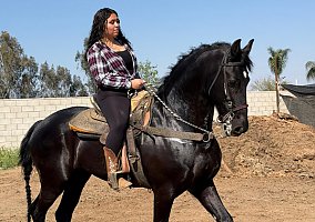 COMMENTS: 2016 Friesian gelding, very elegant and muscular, well trained under saddle, walk, trot, canter and trail riding. Super calm teperament, he is easy to handle, 87.5% (7/8) Friesian and is very tall. Horse transportation can be arranged.