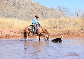 On Queso’s days off, he’s taken many trail rides down at the Canadian River, treading through the sand dunes and surrounding the rocky terrain in the hills with all the trustworthy manner you could ever expect out of a reliable trail partner. He gets along well with ATVs, dune buggies, wildlife, even fire trucks, and Tilly our dog!