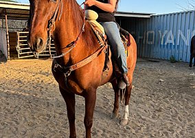 COMMENTS: Easy going temperament, well broke under saddle, basic walk, trot, canter and amazing on the trails. Easy to handle on the ground and good temperament. Stands for farrier, baths, calm around other horses and trailers very well. Horse transportation can be arranged.