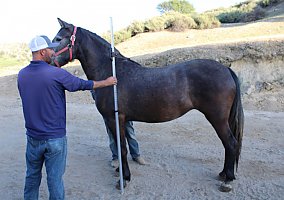 COMMENTS: She is not under saddle, gets handled on a very regular basis, great ground manners and is ready to get started under saddle. Splendid mover, she expresses light-footed with a moment of suspension, demonstrating elasticity and power, gorgeous and kind, wonderful temperament. Stands for farrier, baths, calm around other horses and trailers very well. Horse transportation can be arranged.