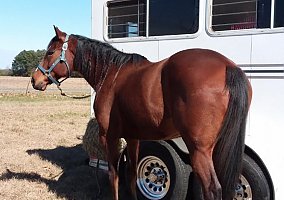 Exceptional loaded pedigree (Renes Classic Trick) bay AQHA appendix mare by a winning son of 4 X World Champion Rene Dan Jet out of a daughter of Regal Classic (Vice Regent and grandaughter of TB CH sprinter Phone Trick. Extended pedigree on allbreed. She has raised 2 beautiful correct colts. I have her 2024 colt by a son of ASNY. She is very athletic, hunts the barrels (2D/3D) and a natural pole bender. Sound, healthy, Great mother, breeds and foals easy and heavy milk producer. One nice foal will easily pay for her. Im getting older, dont wish to breed anymore and have too many green horses to ride. Thought Id never sell this mare but life dictates lessening my work and she's not getting used. Excellent ground manners, more go than whoa under saddle, knows her job. Very easy light mouth handle, intelligent and would be nice to see her riding in less stressful diciplines as well. Ive owned her her entire life so feel free to ask anything.