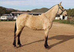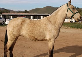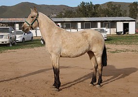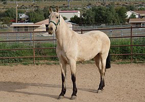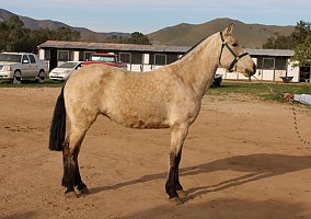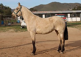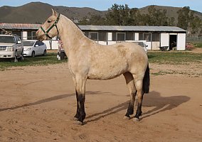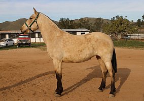 COMMENTS: Big Andalusian buckskin mare, paperwork in order, excellent Broodmare for a breeding program, will certainly pass on her color and movement pattern, baroque style, good quality breeding, excellent movements, high potential to produce color and conformation. Knows ground work, has great manners, loads fine and stands for farrier. Red factor (e), Cream Dilution (Cr). Transport can easily be arranged all over North America!