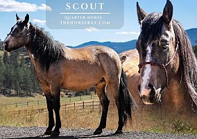 Scout is naturally quiet and steady, more “whoa” than “go”, and not spooky. He’s safe for kids to be around and takes life at a relaxed pace. He’s still young and not completely finished, so he’ll do best with an intermediate or confident rider who’s assertive and consistent. He appreciates a rider who uses their seat, not just their legs. Too much kicking and he will just stop, but if you know how to lead him with your seat, then he will take you anywhere you want to go.
