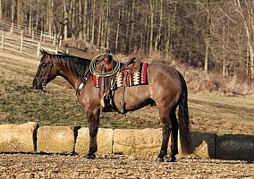 Weston is a 15-hand Grulla gelding with an exceptional demeanor and solid training to match his stunning looks. This 2019 model is safe, dependable, and well-rounded, making him an ideal partner for riders of all levels. Whether you are looking for a steady trail companion, a versatile all-around horse, or a confidence booster, Weston fits the bill. He has been on countless trail rides, traveled to new places, and always takes new experiences in stride. He is traffic-safe, has been ridden on state roads, and crosses water with ease. He handles rough terrain without hesitation and has been exposed to a variety of environments, from wooded trails to open fields. With a good one-hand neck rein and responsiveness to leg pressure, he is light in the bridle and easy to guide. He has a solid walk, trot, and canter, making him comfortable to ride whether you are out on the trail or in the arena. This gelding is not just brokeāhe is truly well-trained. He side-passes to the mounting block for easy on and off, making him ideal for riders who appreciate a considerate horse. He is soft in the mouth, moves off your seat and leg with ease. Weston is also desensitized to bull whips, gunshots, tarps, jugs, and all sorts of obstacles, proving repeatedly that he is level-headed and unshakeable. He is safe and fun for everyone, from beginners to advanced riders. He is forgiving enough to help a novice gain confidence while still offering enough responsiveness and training for an experienced rider to appreciate. He is the kind of horse you can let sit for a while and know he will ride off the same every time. One of Weston best qualities? His personality. He is the first to greet you when you walk into the barn, always eager for attention and ready for his next adventure. He enjoys being pampered, stands patiently for grooming and saddling, and has a kind, willing attitude that makes him a joy to be around. He currently wears shoes on all four feet due to the terrain where he is ridden, but he can go barefoot without issue. He loads, hauls, ties, and stands quietly for the farrier. If you are looking for a safe, trustworthy, and well-trained gelding with a heart of gold, Weston is the perfect fit.