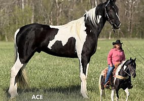 Ace is a Registered American Gaited Horse 5 year old gelding, standing 14.3 HH. Ace will side pass to you on a mounting block, he stands still to be mounted and dismounted and is the definition of a “Billy goat” in the woods. Rides anywhere in a group. He is safe and solid around traffic, farm equipment and livestock or wildlife, and comfortable in everyday riding situations being in the front, back or middle of a group. We’ve had ace for a little under a year now, using him for a trail horse. We have hauled him all over Tennessee and the great state of Ky! Ace is naturally gaited he has a nice ground covering flat walk, but will step out into an even faster smoother run walk when asked! Ace is a friendly gelding that will meet you at the gate or stall door almost every single time! Ace is an exceptional fella in the stall, very clean and dry but he also enjoys his time in the pasture being a true gentleman to our other geldings,mare and a couple little miniatures.