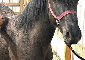 Beautiful yearling Canadian filly available to an exceptional home. Excellent pedigree, conformation, and temperament. This registered Canadian filly possesses a compact build, expressive feminine head, and a balanced physique. She has clean joint structure and lovely straight legs with plenty of bone. Her hind quarters have excellent muscling, and her feet are naturally square set. She has a nice short back, with a strong loin connection, typical of this breed’s pulling heritage and resilience.