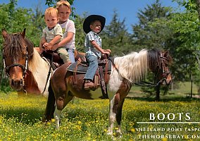 I proudly present Boots, a truly special little pony with a big personality and an even bigger heart. This 11.2hh Registered Bay Pinto Shetland gelding, located in Missouri, has been part of our family—especially for my six-year-old son, who has shared many adventures with him, as you can see in his full video.
