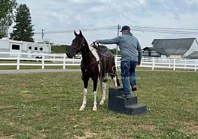Falcon, 4-year-old, 15 hand American Gaited Horse gelding, located in Lewisburg, Tennessee. Falcon is a trail horse suited for riders looking for a straightforward, easygoing partner. He is a consistent gelding that is simple to manage both in and out of the barn. On the ground, Falcon has excellent manners. He is easy to catch, leads well, stands tied quietly, and is respectful to handle. He stands quietly for mounting, is good for the farrier, and is easy to groom and tack. Under saddle, Falcon offers a smooth, natural gait and travels willingly. He is confident on the trail and crosses water, logs, and rough terrain without hesitation. He rides steady whether alone or in a group and remains relaxed in different environments. Falcon is a dependable gelding ready to continue in a riding program.