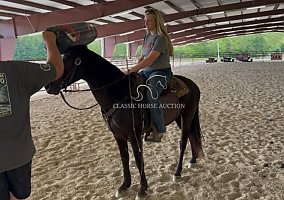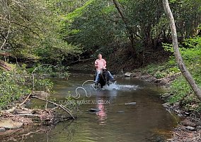 Johnny Cash 7-year-old, 14 hand Kentucky Mountain gelding, located in Rockholds, Kentucky. Johnny Cash is a trail horse suited for riders of all experience levels seeking a safe, smooth, and dependable partner. He has a calm, steady disposition and is consistent whether ridden daily or given time off. He offers a naturally smooth gait, including a relaxed walk, running walk, and an easy lope. Johnny Cash rides on a loose rein and provides a comfortable ride for long days in the saddle. He is well exposed and handles traffic, dogs, and various environments with a quiet, level-headed attitude. He is confident on the trail, rides out alone or in a group, and remains steady in different settings. On the ground, he is easy to catch, handle, and tack, with good manners and a willing nature. Johnny Cash is a reliable, family-friendly gelding ready to be enjoyed.