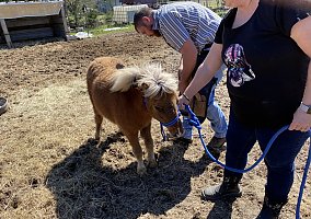 Adorable mini stud for sale. Handled since born. Loves to be brushed and has had his hoofs done for the first time. Still working on our leading. Dam is red roan and Sire is a grulla paint. Both on site.
