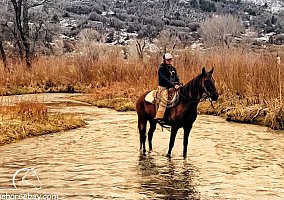 Voodoo is a 15.1 hand dark chocolate (with dapples) registered & certified Rocky Mountain gelding. I own both VooDoo’s parents; He was bred & raised by me. His sire is RRF’s PrimeTime, World Grand Champion, & well known for throwing extremely gentle, good gaited, and sensible-minded horses from day one. His mare is old bloodlines of Dock himself. He has the hair gene from both parents. He’s going to have a very long mane and tail. From day one, VooDoo stood out amongst the rest of the babies as friendly & wanting human contact. Today VooDoo may be one of the sweetest & loving horses I’ve ever been around. VooDoo will be four years old in May; we started him this January. Even though he doesn’t have the years, VooDoo has already racked up the miles! He is already a trail riding deluxe! He will go anywhere & do anything. He is very sure-footed and confident on the trails. Alone or in a group, neither bothers him. VooDoo is a big boy and can cover some ground in his gait and at a walk. VooDoo has NO bad habits! His manners are impeccable; there is absolutely no buck or rear in this horse. He is willing in every way. He’s at the perfect point to be molded into the kind of horse anyone wants. VooDoo has a very smooth and fancy way of going about him; he’s flashy and going to turn heads gaiting down the trail. If you are interested in hitting the show circuit, this horse has the potential to show easily. UTD on vacs, worming & teeth. Loads & stands for bathing.