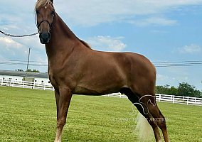 A Registered Tennessee Walking Horse Gelding. Foaled May 4, 2022. Sorrel with star, white mane and tail. Meet Looker, a young Tennessee Walking Horse gelding who truly lives up to his name. Standing a solid 15.1 hands, he is big, strong, and built to carry you comfortably for miles. His rich sorrel coat and long white mane and tail turn heads wherever he goes, and his natural smooth gait makes every ride a pleasure. Looker is trail ready and experienced beyond his years. He confidently travels through water, open fields, woods, and mud without hesitation. Windy days, rustling leaves, and unexpected wildlife do not bother him. He is traffic and farm equipment safe and rides willingly in the front, middle, or back of the group without any fuss. This personable gelding loves attention and displays exceptional ground manners. He stands quietly for tacking and saddling, enjoys a good bath, and stands calmly to be brushed. He is excellent for the farrier and makes mounting simple by parking out or standing patiently at a mounting block until you are settled. Whether you are seeking a sure-footed partner for long autumn trail rides or a striking young horse with the pedigree and presence to go in many directions, Looker is ready to be your dependable companion and eye-catching showpiece. Come meet Looker, a true standout who is eager to hit the trails and share the best of the season with his new partner.