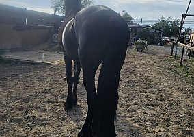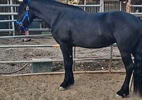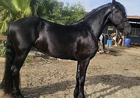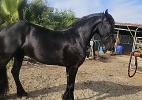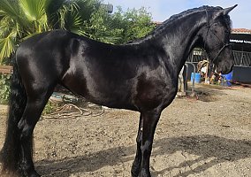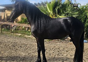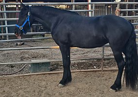 COMMENTS: Beautiful purebred friesian mare, she is ideal for a future in dressage, performance, or as a broodmare. Good clean conformation and that unmistakable Friesian presence. She has a very elegant head and high potential, exceptional movements, long mane, good powerful build, good ground manners, calm and willing temperament. She is easy to handle and walk and trailers well. Horse transportation can easily be arranged.