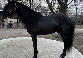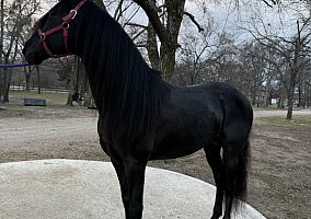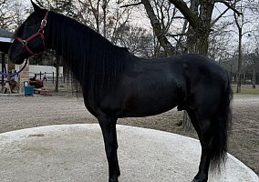 COMMENTS: Stunning 2021 Black Andalusian, Dressage prospect, well broke under saddle, good brain, great work ethic, over extravagant movement, 3 quality gaits, walk, trot, canter, high breed quality, very correct conformation, flashy, calm temperament, double registered with ANNCE (revised) and IALHA, well broke under saddle. Horse transportation can easily be arranged.