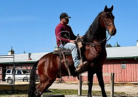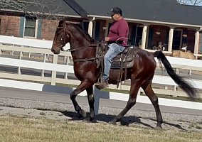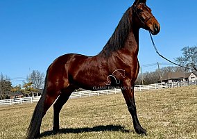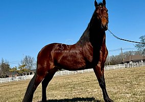 Absolute is a Registered Tennessee Walking Horse gelding standing a solid 15.3 hands tall and dressed in a stunning, unique rich bay coat that truly sets him apart. With four sharp black stockings and bold black points, this eye-catching bay is a standout wherever he goes. Calm, willing, and eager to please, Absolute is a multi-talented horse that drives just as beautifully as he rides. Under saddle, he is safe, steady, and confident! Stepping over logs, rocks, and crossing mud puddles with grace and sure-footed ease. He parks out and stands patiently at the mounting block like the true gentleman he is. On the road or around the farm, he is traffic, and dog approved. Ready to go wherever you point him! In harness, Absolute absolutely hooks up like a dream! He stands quietly for harnessing and is unfazed by the breeching, lines, crupper, or even noise. He remains still and patient while you load up and unload from the buggy, showing the kind of solid mind everyone wants in a driving horse. Shoe jobs, haircuts, and baths are no problem for this gorgeous boy. He is mannerly, dependable, and ready to be your next trusted partner. Come ride or drive him today and see why Absolute is absolutely the best!!Justin Jenne’ Classic Horse Auction Consignment 931-224-2968 Lewisburg, TN