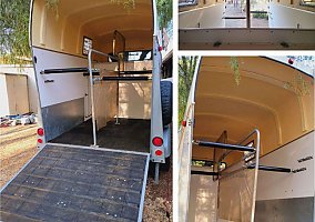 Spotless, in LIKE NEW condition, Brenderup Baron TC 2-horse trailer with dressing room, located in the Greater Los Angeles area - very low local miles. Perfect for your large warmblood dressage horses and jumpers as well as your trail partners of all sizes. Each extra tall stall has six butt bar configurations, with both bar height and stall length configurable independent of each other. All exterior and interior lights are in good working condition.